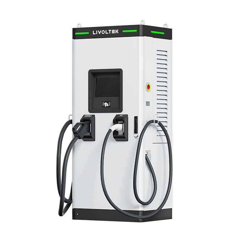 MF stand-alone DC charging station, maximum 82kW output for quick and flexible charging. LIVOLTEK stand-alone fast charging station, integrated with two DC outputs and one optional AC output, can be flexibly configured with Type2, CCS2 plugs and AC connectors. It has an intelligent cable management system for effortless pick-up. It complies with all IEC standards for off-board electric vehicle charging systems, including IEC 61851-21-2 EMC requirement and IEC 61851-24 digital communication control.